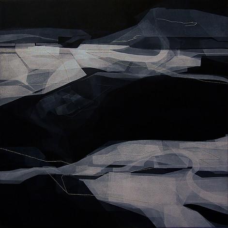 Trasposizione 50x50cm Acrilico acquerellato e tessiture su tela 2015