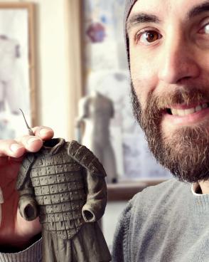 Alberto Criscione was born in Ragusa in 1981. The son of an artist, he learned the fundamentals of sculpture in the workshop of his father, Giuseppe, an internationally renowned nativity scene maker. He began working at a very young age, creating monumental projects for churches and museum settings in the province of Ragusa.After years of experience in the field of Sacred Art, he decided to approach Contemporary Art, embarking on a new path of experimentation. From 2008 to 2014, his studies intensified: he traveled across Europe, meeting many master ceramists and sculptors, from whom he learned new techniques such as stoneware and porcelain modeling, large kiln firings, lost-wax bronze casting, wood sculpture, and synthetic resin molding. Over time, Criscione developed a special connection with clay, a material that best captures the immediacy of his artistic gestures. In 2009, he created the Golem People, dreamlike sculptures featured in Arte magazine by Mondadori, marking a sharp departure from his earlier works. Criscione belongs to the middle generation of artistic talents in Italy, and his work is distinguished by its contemporary narrative, poetic vision, and extraordinary sculptural skills, making him one of the most compelling artists on the national scene. After receiving various accolades and participating in numerous solo and group exhibitions, his works are now part of public and private collections in Italy and abroad.