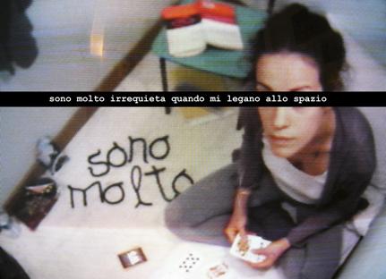 The outside world becomes what to run from, the reality that forces people to interact involuntary with others, to use codes for their understanding. "I am very restless when I am bound to space, " aphorism by Alda Merini transforms the outside world in a cage in which people live restless, prevented from expressing themselves fully. The room where I was locked up for five hours, 1 square meter, it becomes the world in which I lived in freeadom, eating, sleeping, reading, playing doing all makes me happy, with no time to set and not mandatory. Even when the room door was opened to visitors, showing the silent resident, the isolation remained extreme and meditative as the act of composing words by hand: a ritual that shows the activities of women like sewing or crochet, together with the more masculine rituals such as thumbnails and writing. Gestures which attracted the extreme attention of every person in the house, allowding me to control the outside world. A difficult possibility in a real situation.