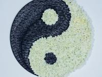 di amore. Invito lo spettatore ad analizzare l’opera dall’alto verso il basso, in modo da scorgere il senso che si cela dietro queste linee. Difatti, scomponendo l’opera, lo spazio destro e sinistro del cuore rappresentano l’amore “ramificato” da due individui destinati ad unirsi. Si evince che entrambi disegnano una sequenza frastagliata di rami atti a descrivere la crescita sentimentale che ognuno di essi ha condotto nel corso della sua esistenza. Tanti rametti confluiscono verso più rami che si congiungono ad altre diramazioni ancora più grandi, la cui risultante è un tronco che confluirà verso il fulcro.