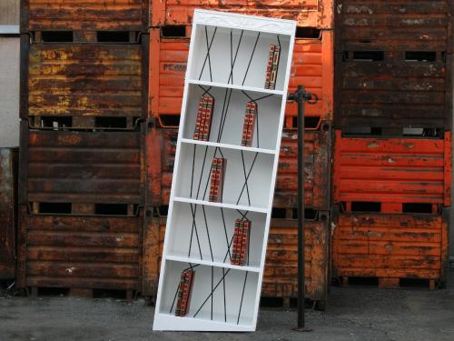 materiali: legno laccato, gomma, ferro arrugginito