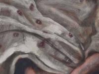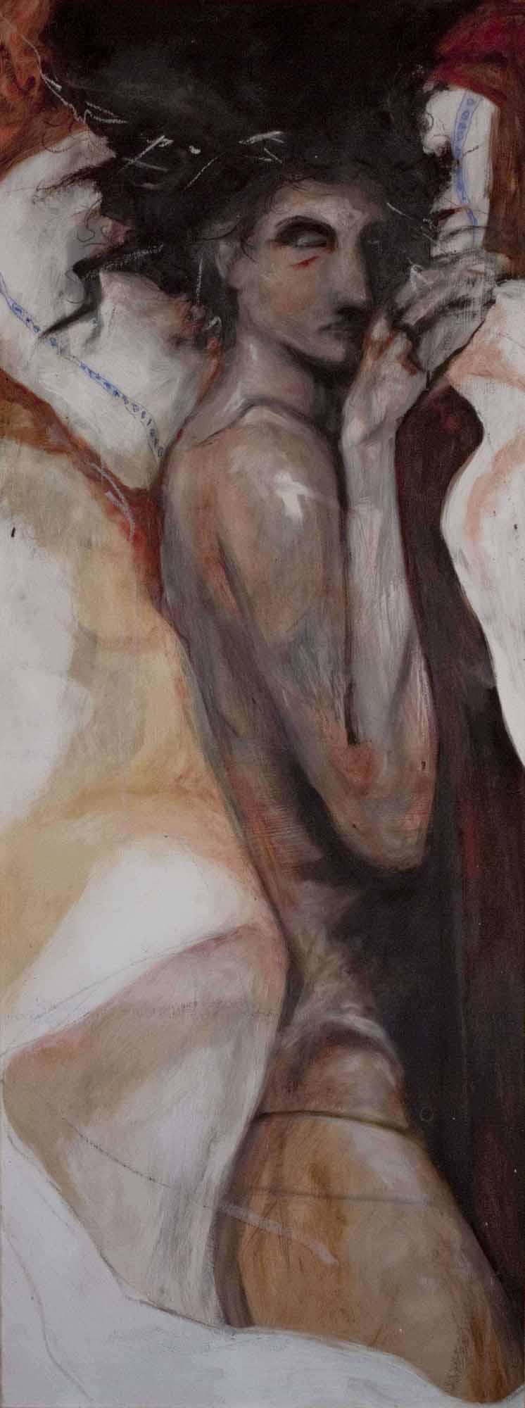 Accanto alla storia di un uomo si distende una striscia del colore dei suoi sogni. - Lasciatemi sognare, lasciatemi vivere nel mio punto di rottura. Dormire in un indaffarato risveglio o riposare nel perpetuo delle cose; sognare di vivere sotto una coperta di klimtiani calori o sposare carni shiliane in pulsanti e sanguigne venature di corpo. Vorrei dormire e nel contempo vedere il mio sogno per viverne le emozioni del continuo stupore; invece in un allegro tamburellare ritorno sempre in contatto con tutte le realtà presenti che so ancora ascoltare… riposare, dormire, agire, sognare, lasciarsi stare, abbandonarsi al caos creativo prodotto dal limbo, in quanto momento rigeneratore, in quanto vita, attimo pieno di dio, ingannevolmente improduttivo. Saper poi riportare la saggezza dei sogni e di tutte altre manifestazioni dell’inconscio ad un collegamento con i fatti del vissuto quotidiano, significa tener presente alla propria coscienza tutto un carico di simboli e di messaggi che usualmente abbisognano di una paziente metabolizzazione per essere svelati nel loro pieno significato. Non sono utopie, non sono bugie, non è sogno, non è reale; sono punti di connessione con tutto il loro carico espressivo che inducono ad uno stato sensoriale ampio, produttivo, in evoluzione. Questi corpi reagiscono dormendo poiché dormendo sono in posa e vivono tra l’io della veglia e l’io del sogno; lasciateli vivere per svegliarsi prima o poi al mondo o per abbandonarsi definitivamente al sonno, lasciateli pure rappresentare quel punto di indecisione, a volte equilibrato e armonico, lasciateli stesi da pennellate istintive e sicure come una striscia del colore dei suoi sogni continuamente da ripensare… - Ernesto Magnifico