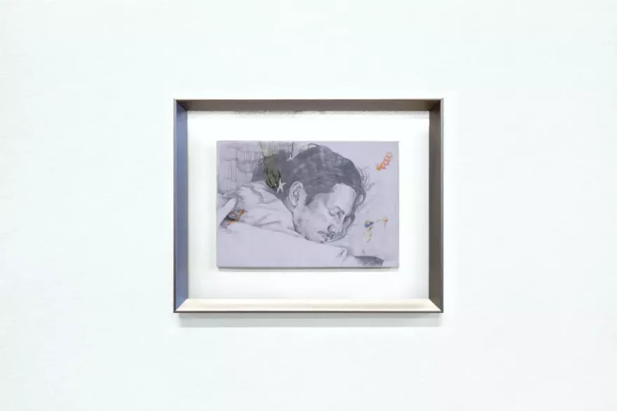 Carta, carta lucida, acrilico bianco, matita e matite colorate