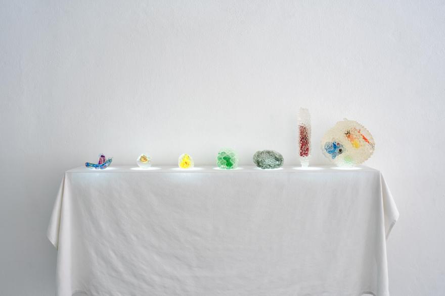 Questo progetto è nato viaggiando nel Sud-est asiatico, dove la natura e i resti del passaggio umano convivono in un fragile equilibrio. È il frutto di cinque mesi di lavoro, di cui due trascorsi tra Vietnam, Cambogia e Thailandia. Un’esperienza immersiva che mi ha permesso di vivere le contraddizioni di questi luoghi e osservare da vicino l’impatto ambientale. Ho raccolto frutti locali e rifiuti tra spiagge invase dai resti del consumo quotidiano e falò serali. Con stampi in silicone ricavati direttamente sul posto. Questi materiali, simbolo di un ciclo fuori controllo, sono stati inglobati in sculture di resina vegetale, trasformando i frutti della terra in reliquie contemporanee. Questo progetto è per me memoria, denuncia e riflessione sull’impronta che lasciamo. Un invito a chiederci cosa resterà davvero di noi e come stiamo scegliendo di “assaporare” i frutti che coltiviamo.
