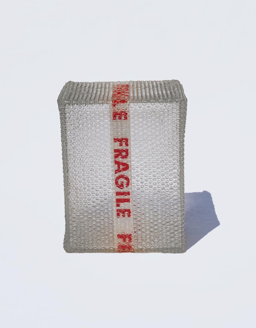 Ecco il pacco tanto atteso: spoiler, non contiene nulla. La scritta “fragile” inganna, perché non lo è affatto: quest’involucro durerà in eterno. Il pluriball in resina non scoppia più, un invito a non sprecare le risorse e a ridurre l’uso della plastica.