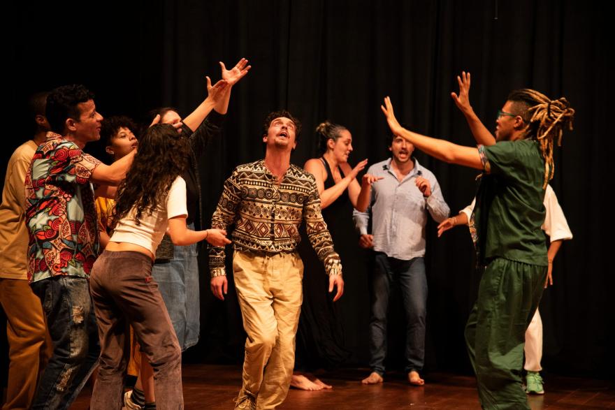Un laboratorio scenico dal vivo. Artisti italiani e brasiliani condividono il palco in un evento di improvvisazione pensato come strumento di selezione per borse di studio in Italia. Un’occasione per osservare dinamiche di lavoro, capacità di adattamento e reattività scenica in un contesto pratico, mettendo alla prova i partecipanti in situazioni sceniche impreviste.
