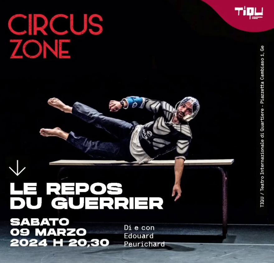 ✦All'interno del progetto “Circus Zone” di Sarabanda - progetto che funziona come spazio di arrivo e pista di lancio di nuovi artisti - è inserito lo spettacolo LE REPOS DU GUERRIER. ✦ Un one-man show che getta uno sguardo intimo (non senza un pizzico di ironia) sulla carriera di un artista circense. Seguiamo un acrobata e lanciatore di coltelli mentre cerca di rievocare la sua carriera professionale. Scene vissute, fantasticate o talvolta completamente plagiate, si svolgono sott’acqua nel paesaggio di una generazione di artisti circensi dilettanti e professionisti, sia tradizionali che contemporanei.