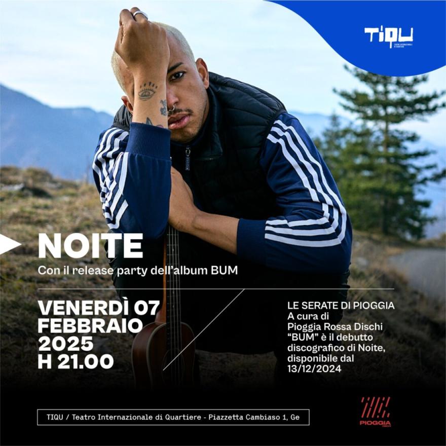 LE SERATE DI PIOGGIA A cura di Pioggia Rossa Dischi Ospiti: Federico Dragogna, Tommi Scerd e Francesco Ciapica “BUM” è il debutto discografico di Noite, disponibile dal 13 dicembre 2024, per Capitol Records e Pioggia Rossa Dischi, un manifesto dell’esistenza, che parla di dipendenza, autosabotaggio e fallimento. I brani sono legati da un filo narrativo invisibile ma potente: la nostra luminosa, grottesca, disperata e visionaria umanità
