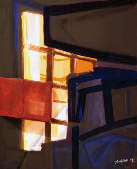 Attraverso Rosso, 2009- acrilycs, varnish and polystyrene on canvas, 80x100 cm