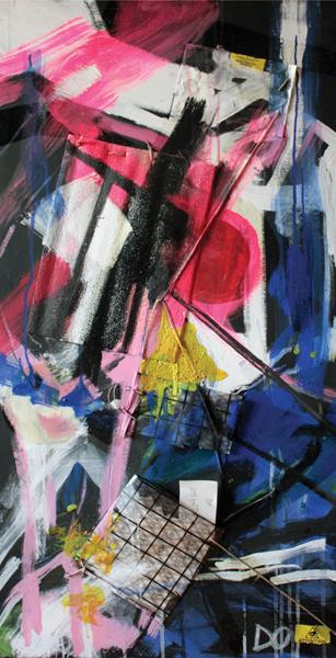 Do Attention,2009 - acrilycs, string, plastic and varnish on canvas, 50x100 cm