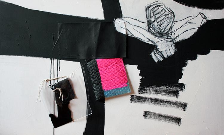 Ego Pictura,2010 - acrilycs, tempera, pluriball, string and varnish on canvas,100x70 cm