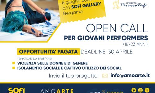 Scrivi il tuo progetto e presentalo inviando una email a: info@amoarte.it, le performance che verranno scelte potranno esibirsi sabato 8 giugno presso la Sofi gallery a Bergamo, ricevendo una remunerazione.