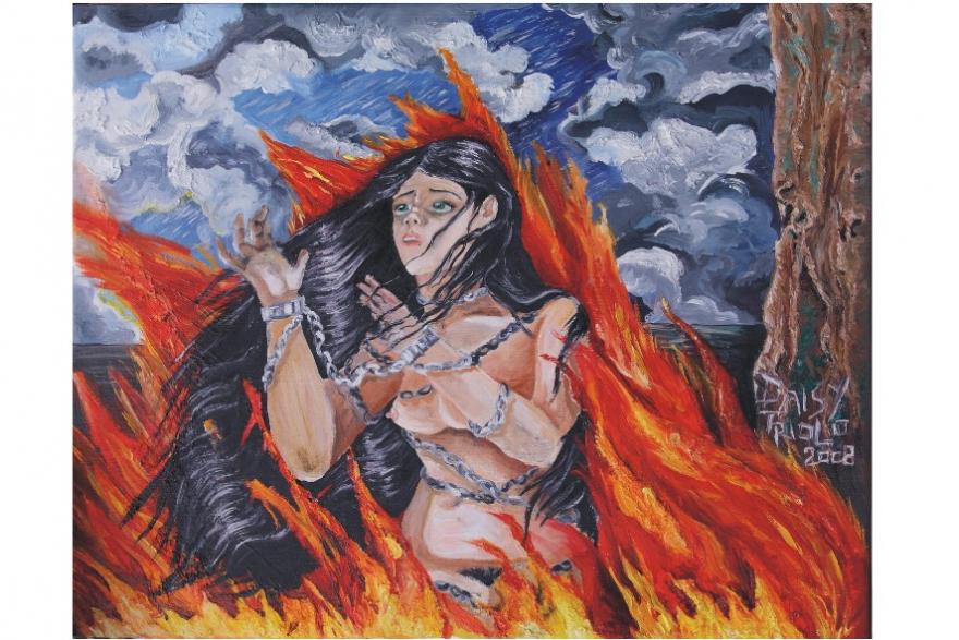 Espiazione, 2008, tecnica mista su tela, cm 40x50