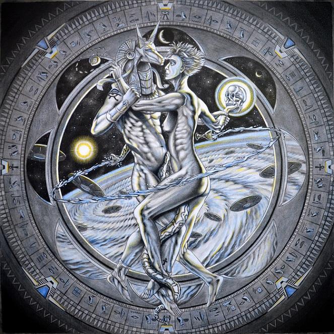 Un passo del libro dei morti egiziano, riferito alla più antica divinità creatrice dell'enneade,"Atum"recita: << Io sono colui che rimane...il mondo tornerà al caos, all'indifferenziato, io mi trasformerò allora nel serpente che nessun uomo conosce, che nessun dio vede >>. Può sembrare solo un caso, che proprio un serpente apparve ai progenitori dell'umanità, celandosi alla vista di colui che li fece a sua immagine e somiglianza, per metterli in guardia proprio da quest'ultimo. Eppure qualcosa sembra non quadrare. Il sodalizio fra le divinità e gli umani è certamente coevo all'umanità medesima. Dei secondi sappiamo parecchio, quanto ai primi, innumerevoli sono i testi sacri e le tradizioni orali che ne danno conto, e nonostante le miriadi di versioni differenti, un unico filo comune li lega tutti. "Vengono dal cielo e hanno da sempre instaurato "strette" relazioni con i popoli che hanno visitato, non solo, in più di un'occasione hanno promesso di far ritorno". Certo lì dove storia e mito si confondono nulla appare reale e tutto è lecito da supporre, ma chi lo sà. All'alba di un nuovo millennio sull'orlo di una crisi planetaria dove i confini di bene e male sembrano più sbiaditi che mai, non è detto che non scendano nuovamente a farci visita sui loro "carri infuocati".