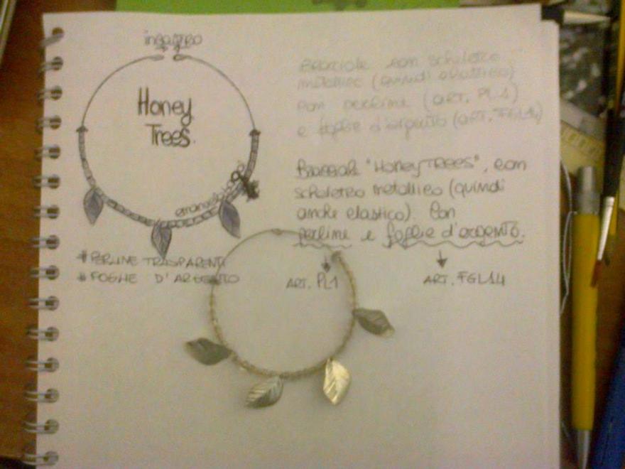 Bracciale "honey trees" con scheletro metallico. Con perline e foglie d'argento. Emanuela Bagoi © 07.06.2013 Disegno e realizzazione del bracciale. #summer