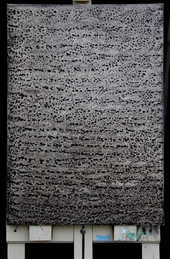 Epistolare. Il titolo fa già da incipit al significato (l'immagine mentale che noi abbiamo di quella parola) non significante (la sequenza di fonemi o grafemi di una parola ) di quest’opera, si tratta di una tela realizzata con una tecnica mista che comprende gesso, vernice e china, più che di dipinto qui si parla di scrittura. La volontà di scrivere una lettera come oggetto e anche come singola, una lettera mai mandata, un messaggio mai scritto, un messaggio che diventa quindi illeggibile o semplicemente incomprensibile, ma in ogni caso scritto. La poetica di questo lavoro ripercorre la difficoltà comunicativa contemporanea, infatti la ricerca di una nuova scrittura viene eletta dal materiale che a sua volta stimola oltre la vista il tatto, invitandoci a riflettere su ciò che sta avvenendo nella scrittura contemporanea sempre più virtuale e meno cartacea, ma allo stesso tempo sempre più virtuale e meno reale. Nella pretenziosità di un recupero di coscienza nelle mie sperimentazioni, come in quest’opera, tento semplicemente una pittura nuova, studiata e realizzata con materiali ad alte resistenze, stanca di essere solo vista, desiderosa di essere toccata.