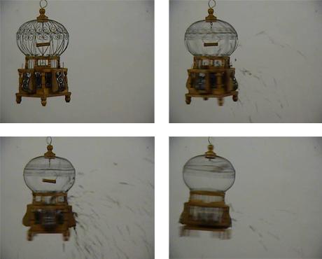 Breathless è un lavoro svolto sull’assenza e sulla conseguente e inspiegabile presenza dell’oggetto messo a fuoco nel video: una gabbia vuota gira pigramente su se stessa, chiusa e inespugnabile, per poi generare un’energia accumulata che viene disseminata e prende la forma di elementi che solo il sonoro ci fa percepire come mosche. Il vuoto si trasforma in un contenuto che la lentezza e la fissità rendevano invisibile.