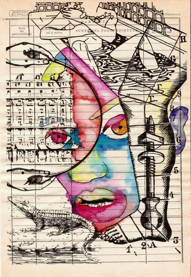 All over me - ecoline, ink, highlighter e transfer sheets on paper - 21 x 31 cm