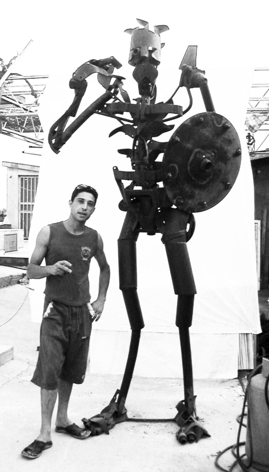 L'opera rappresenta un'interpretazione prettamente personale e in chiave moderna di un antico guerriero. L’originalità creativa, le dimenzioni monumentali(m.3), quindi l’imponenza che si ha vedendola dal vivo sono le note distintive di questo lavoro artistico. E’ un figurativo contemporaneo, ottenuto da un accurato assemblaggio ad arco elettrico di materiale di scarto(oggetti in ferro).