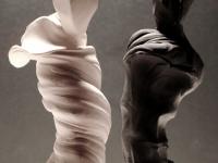 Corpi bianchi e corpi neri modellati con docile e maniacale cura del dettaglio dal giovanissimo Francesco Galgani: sculturine prive di testa e senza arti, studi e porzioni di figura umana come reperti archeologici che catturano la nostra memoria. La ricomposizione dei frammenti plastici, presa in visione da Francesco Galgani, ci conduce ad osservare nel corpo ritratto un’anima romantica permeata di sentimentale erotismo. Nessun velo ai suoi nudi, nessun pudore, nessuna morale traspare dalle sue microsculture; poste su piedistalli di freddo marmo e avvolti da fievole luce come in un museo o in un palcoscenico, protette da una teca o da un volume a cilindro trasparente, le sue opere impongono un punto di vista che conduce alla dolcezza della forma.