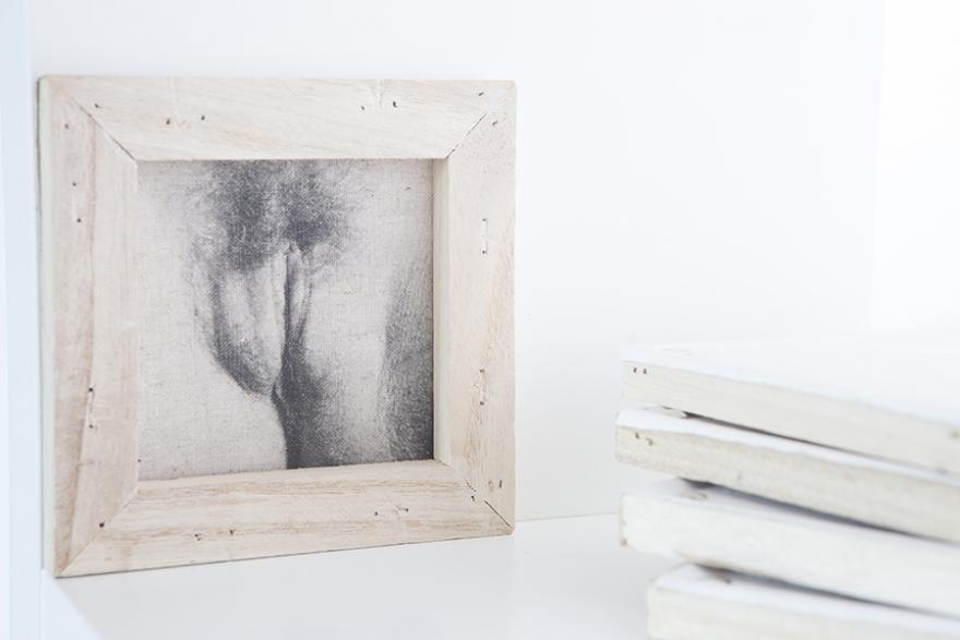 The wooden frame because natural, rough, handmade element. It maintains the uniqueness in the veins, in the color and not reproducible in series.