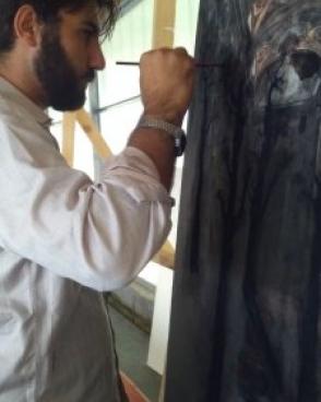 Nei suoi lavori, infatti, sarebbe riduttivo trattare lo studio delle forme trascurando il suo rapporto con la “materia”la quale fa da protagonista dell’opera stessa. Gli interventi che l’artista esegue sul corpo del supporto quali: combustione del legno; scuoiatura ed incisione dello stesso; trattamento con acrilici e colle distese e spellate, mostrano quindil’anima, il vigore e il vissuto alla figura tracciata. La sua ricerca ossessiva di una verità che si cela al di sotto della pelle e delle apparenze, che va oltre un pregiudizio ambivalente rispetto al nostro credo, si rende nota in primis, in modo quasi didascalico, mediante la rappresentazione paradossale di un “Cristo sottoposto a confessione” in un’opera che lo ha reso 1° classificato del Premio Nazionale della Arti –M.I.U.R.; sezione PITTURA. Successivamente inizia ad allontanarsi da uno stile “narrativo” prediligendo così forme e composizioni essenziali, quasi arcaiche, che rievocano la fermezza e tutta la sacralità tipica delle icone.