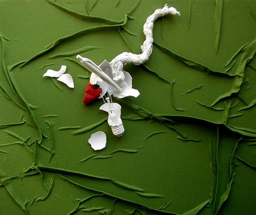 ceppo di vite, busto, orologio, stoffa su tela 70X100