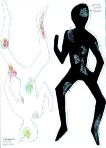 De zwarte figuur symboliseert de priester. Ik heb hem monochroom weergegeven,