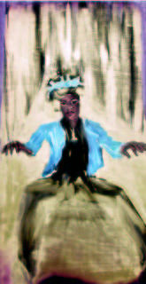 L’opera di Cristina Ottavio si ispira al misterioso affresco che compare su uno dei muri del Chiostro di Sant’Orso, raffigurante la Madonna Nera, di cui non si hanno fonti ufficiali, ma diverse sono le leggende che ruotano attorno alla sua figura. Si dice per esempio che l’immagine della Madonna Nera avesse dei poteri magico-taumaturgici. L’opera a confronto si ricollega all’importanza del culto mariano nelle tradizioni popolari, toccando il tema attuale della diversità religiosa, e ritraendo la Madonna come simbolo dell’amore e del mistero della vita.