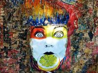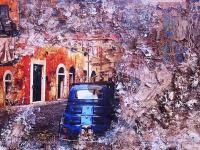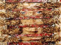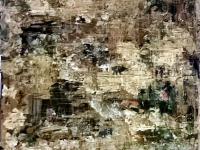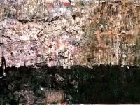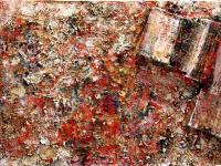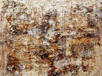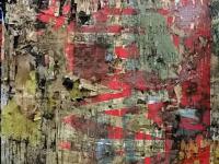 Questa ricerca della materia si fa viva nei suoi lavori di collage-decollage dove la carta incollata strappata e invecchiata diventa sperimentazione materica e cromatiche sorrette, quasi geneticamente, dai forti movimenti corrosivi e in qualche modo strutturali che sono presenti in ogni opera.
