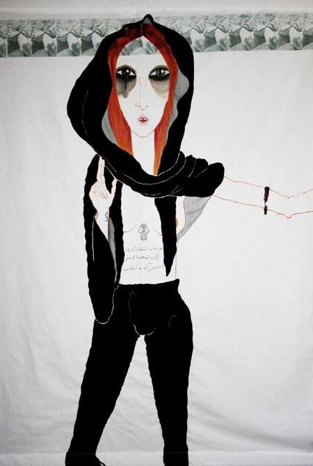 .Un’islamica visionaria nella risolutezza del suo chador non più emblema della sottomissione benedice i fedeli, pontificando una nuova percezione della realtà.
