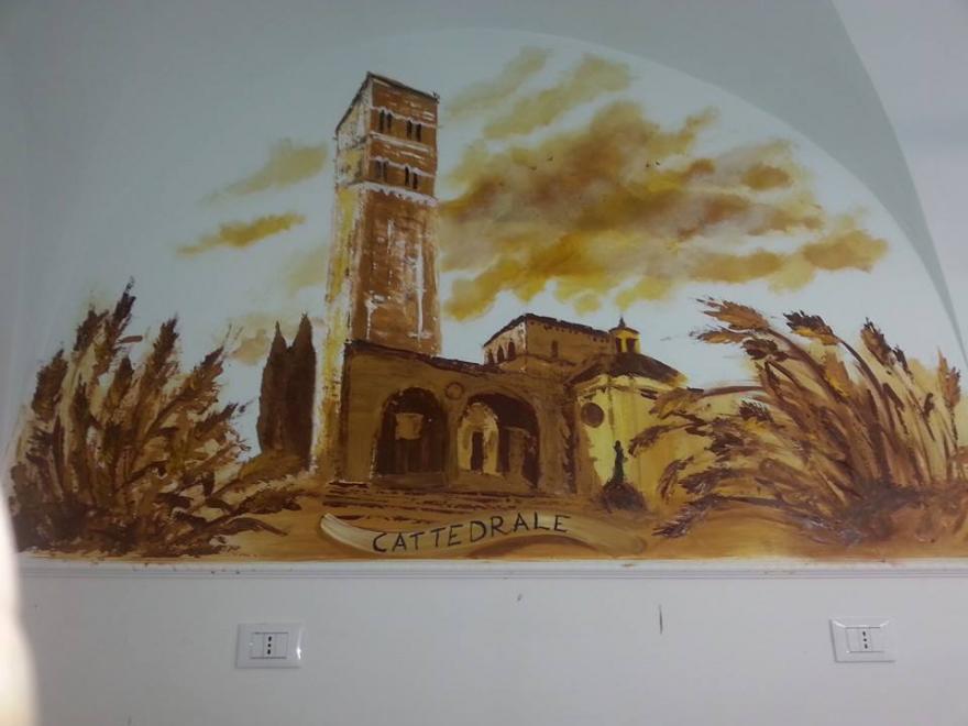 Dipinto murale creato con colori acrilici e lavorati con spatola...il soggetto....la Cattedrale di San Francesco in una profumeria storica di rieti.