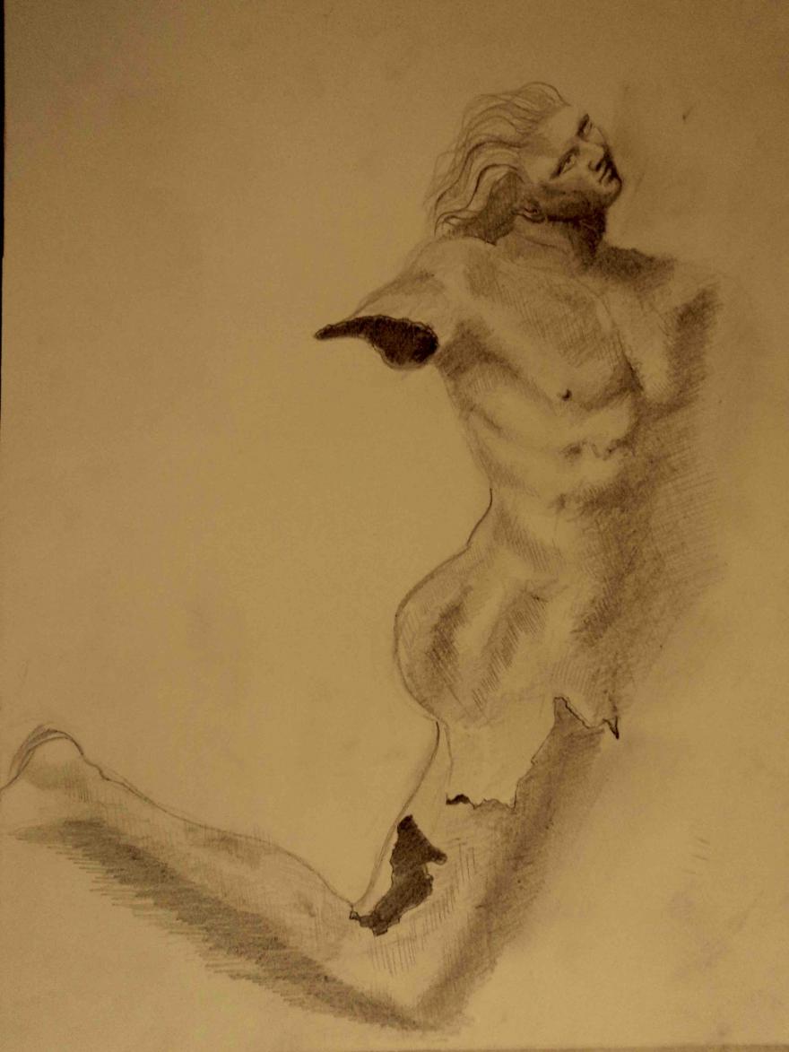 Omaggio al ritrovamento della scultura di epoca Greca nello stretto di Messina. Lapis su cartoncino 30x40