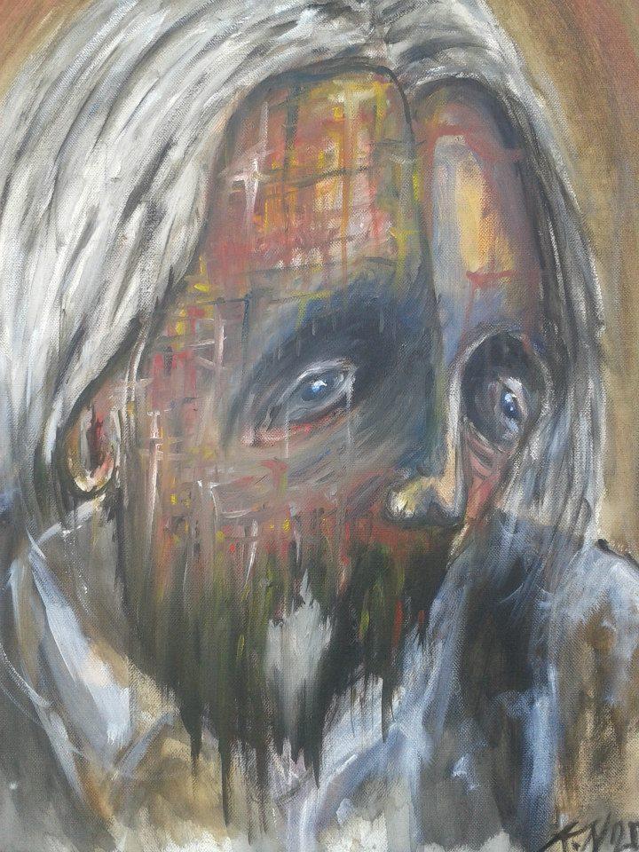 La verità di ognuno di noi è nascosta sotto la maschera, nel mio dipinto scavo nella realtà e colgo quello che tutti voi non riuscite a vedere.Olio su tela (40x50)2013