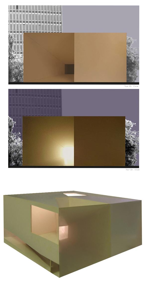 Il progetto per un museo d'arte contemporanea si caratterizza per un ingresso a tronco di piramide che crea una vista anti-prospettica interna, eliminando all'occhio del visitatore situato nell'atrio la massa architettonica museale che lo separa dalla la natura esterna: il volume che raccoglie le opere d'arte sparisce alla vista di chi vie è dentro e viene favorita l'entrata della natura negli ambienti interni.
