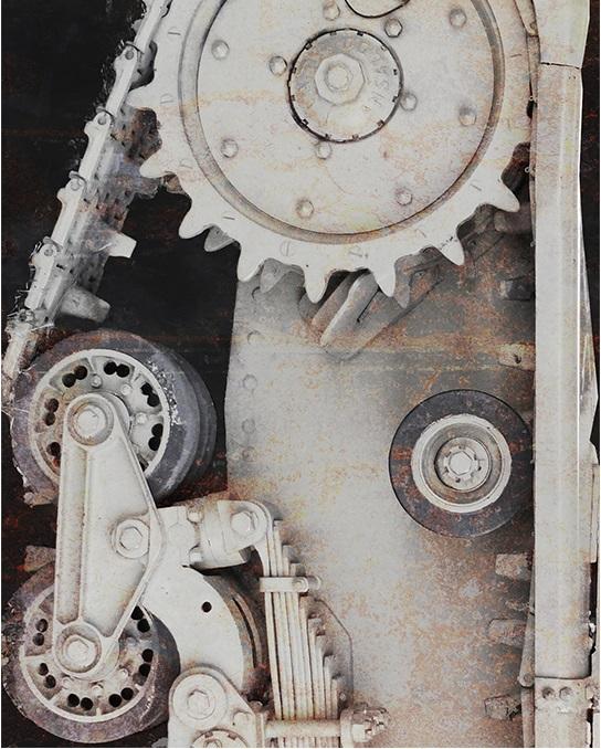 Fotografia originale monocramatica, particolare di un carroarmatoViaggio in Italia: foto, sulla strada per BergamoFotografia Originale 21 x 29,07 cm : Ingranaggi
