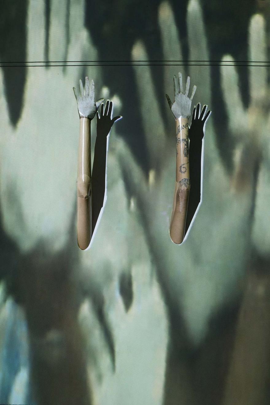 L’opera di Leo Gilardi è un ricordo: grazie all’astrazione del digitale entriamo a far parte di un momento vissuto dall’artista all’inizio della sua adolescenza che viene riportato a noi attraverso un esperienza sinestetica. La fotografia si trasforma in scultura, arti di carta si tendono verso di noi, al di fuori delle proiezioni del video mapping che anima le pareti. Un’unica grande composizione della memoria dell’artista, espressione di un momento che ha segnato in particolare la sua esistenza ma che è, allo stesso modo, un tassello della storia e della cronaca del nostro paese. Grazie ai giornali e alla televisione, tutti abbiamo informazioni sul G8 di Genova anche se distorte dal particolare occhio mediatico che ce le ha raccontate; Leo ne conserva il ricordo dell’esperienza vissuta in prima persona, un momento esistenziale, passo tra la fanciullezza e l’adolescenza, elaborato nella sua mente che, maturando negli anni, costruisce un monumento virtuale composto dalle riprese amatoriali in contrapposizione ai servizi dei telegiornali. Il punto di vista rimane quello di un bambino colpito dalle grandi mani dei manifestanti sporche di vernice bianca e dal sangue sulle teste rotte a manganellate di donne e anziani, dal rumore della folla che scappa dalla carica della Celere e dal suono dei colpi dei proiettili di gomma, dal grande mondo gonfiabile e dalla maschera di maiale che suo padre e il suo amico usavano per manifestare. La carta è un altro strumento importante in quest’opera, prima come elemento plastico e poi come prima impronta, traccia scritta, racconto del ricordo, ripetuto più volte con parole diverse, ma sempre cronaca dello stesso momento, elaborazione di un fatto, trasposizione della realtà. Ci troviamo in un complesso virtuale costruito dalla mente di un bambino, dove le azioni vengono descritte da braccia di carta fotografica, un teatro mimico fatto dei gesti delle persone, mani che aiutano, mani che supplicano, mani che abbracciano, mani che lottano….