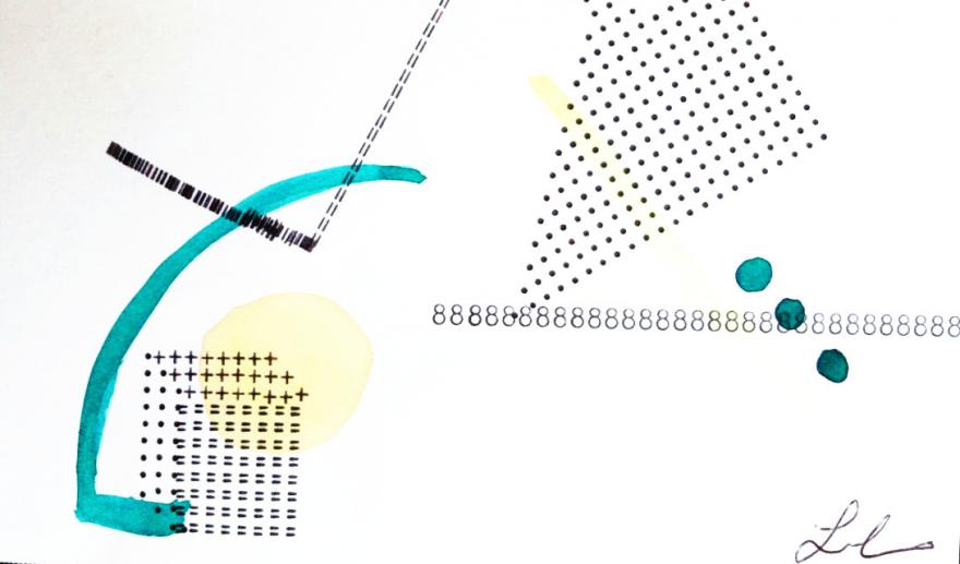 prendendo ispirazione dal costruttivismo russo, la macchina per scrivere si muove ordinatamente libera tra colori e forme tipiche dell'astrattismo kandinskiano