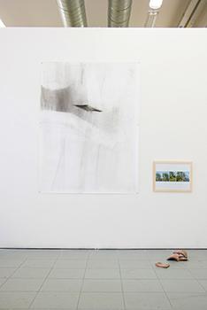 grafite e carboncino su carta, fotografia digitale a colori, terracotta