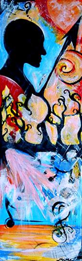 Tecnica: acrilico e collage su cartoncino Ho rappresentato la copertina del film “La leggenda del pianista sull’oceano” tratto dal libro Novecento di Alessandro Baricco