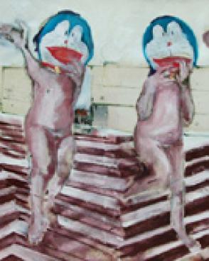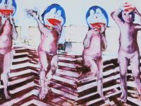 The photographic element is integrated inside a pure painting score.