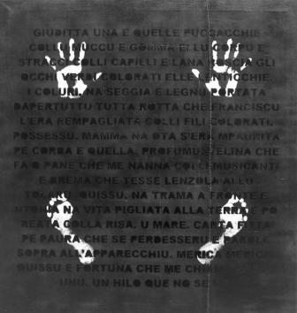 Sulla trama tessuta da mia nonna… l’origine; nella superficie delle mie impronte…il mio essere; nella lingua dialettale… i miei ricordi d’infanzia;