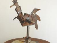 Mirko Barbierato è un attento esploratore del contemporaneo, costruisce immagini mediante materiali, metodi e strumenti propri dell’epoca attuale impiegandoli ,tuttavia, in processi di contaminazione con saperi tradizionali. Ad una tecnica manuale, il trasferimento di immagini su carta di giornale utilizzando solventi, tecnica che consente la decostruzione dell’immagine stessa in elementi utili per una nuova composizione, accompagna l’elaborazione al computer, la tecnica di stampa e un ulteriore intervento con l’aerografo. L’effetto è quello di un’”archeologia” del manifesto, come se vecchie immagini riemergessero da una sedimentazione di immagini e scritte successive. Questo lavoro grafico è in accordo con la ricerca che vede Barbierato già da diversi anni impegnato nell’ambito della scultura e dell’installazione con un riferimento concettuale nell’archeologia industriale : recupero e assemblaggio di materiali residuali e poveri, simulazione di processi di corrosione e di effetti di azione del tempo. L’artista si muove alla ricerca dei tratti caratterizzanti un’estetica del contemporaneo, cerca la bellezza di un materiale o di un’oggetto, di un volto o di un frammento, al di là della polvere, della ruggine, della corrosione e della deformazione; ciò che realmente gli interessa sembra essere la sedimentazione del vissuto e la possibilità di immaginarne e ricostruirne i passaggi.