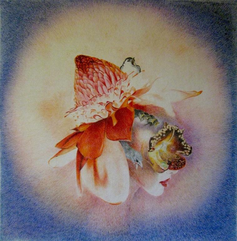 Odette Scapin, "Song", pastelli su cellulosa di cotone, cm 80x80, 2012.