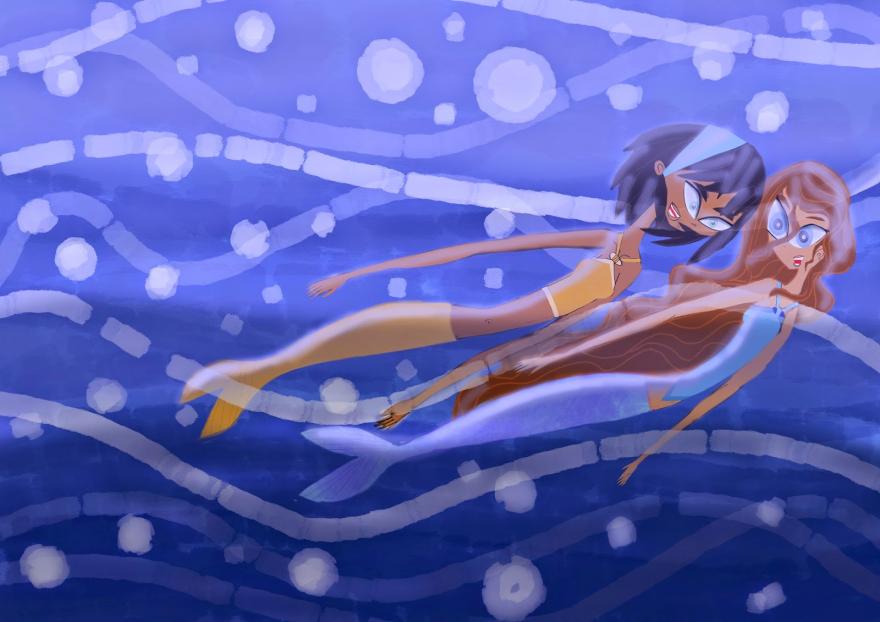 delle giovani sirene, nuotano beate nell'mare...