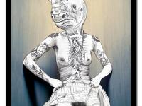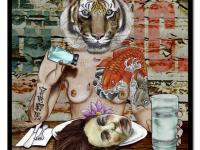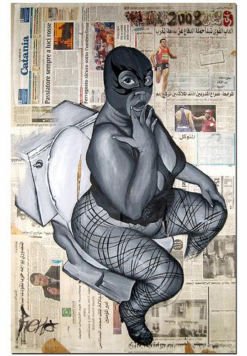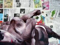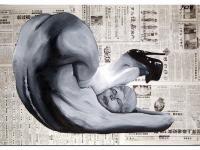 Tecnica: acrilico su fogli di giornale incollati Supporto: bancale di legno Dimensioni: 75X115,5 cm. Spessore: 12 cm. Peso: 8,10 Kg.