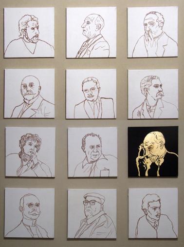 Inchiostro , matita e foglia oro su tela lavoro composto da tele di 30x30 cm/ Ink, pencil and gold leaf on canvas work composed canvases of 30 x 30 cm 2010