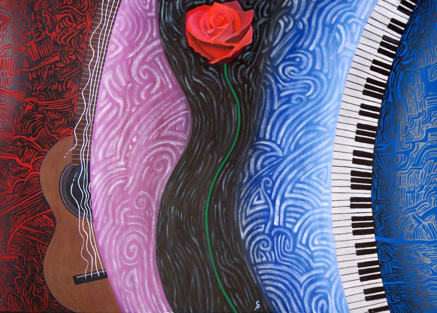Bassorilievo in gesso dipinto con acrilici, 85x65 cm.