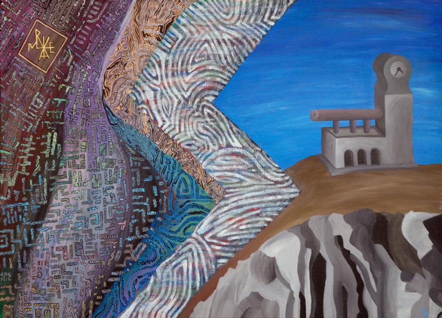 Bassorilievo in gesso dipinto con acrilici, 85x65 cm.