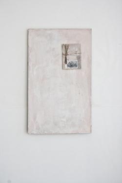 cm 100x60gesso, sale, foto trasferite su carta,stoffa, carta fatta a mano, spago, rami secchi e terra su tela